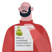 Individuals or families in need of social support who will RISE thank to the free services provided by the now partly employed skilled individual.
