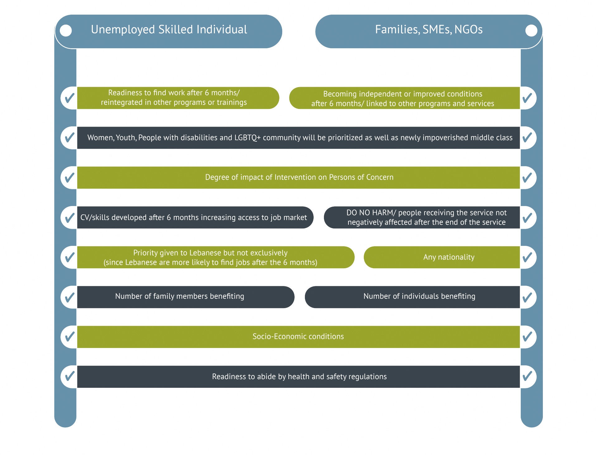 Based on referral forms sent by NGOs and partners, beneficiaries will be selected and prioritized as per below selection criteria: